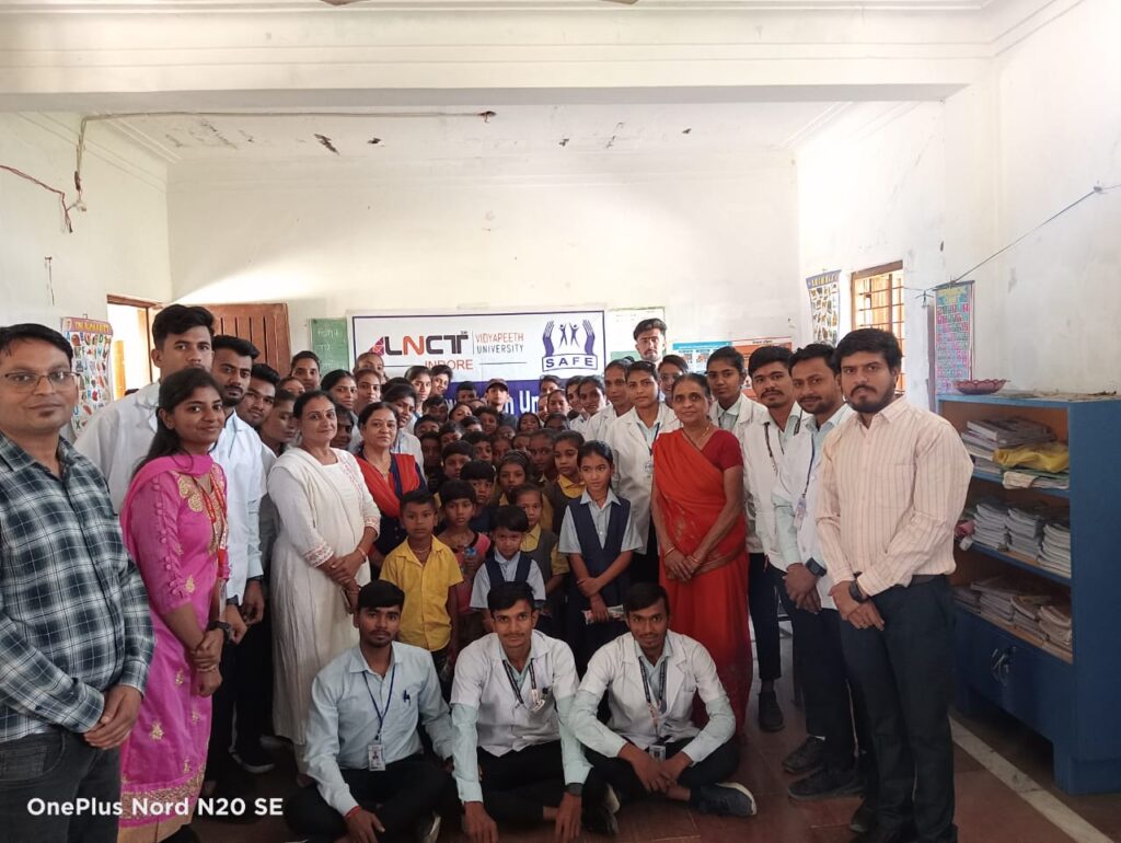 A School Health Education Program was organized by B.Sc. Nursing IV-year and GNM I-year students of SAFE Institution of Nursing College, under LNCT Vidhyapeeth University, at Government Middle School Begam Khedi. The program was supervised by Mr. Umesh Kumar, HOD of the Community Health Nursing department, Mr. Vivek Trivedi, Assistant Professor, and Ms. Sophiya Shantwant, Tutor, all from SAFE Institution of Nursing College.